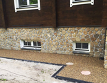 ДПС-2/01 наносится на камень только перемешиванием – в бетономешалке или в тазу клей перешивается с камнем до тех пор, пока весь камень не будет покрыт клеем, избегая возможности непромеса. Расход клея при данном нанесении зависит от фракции камня, чем мельче фракция, тем выше расход. При фракции 1-2мм - расход клея 8% от массы наполнителя (800гр. клея на 10кг. камня), 5мм – 5%, 10-15мм - 4%клея, 20мм - 60мм - 3%. Для высоконагруженных участков или для участков с большим потоком пешеходов, расход клея увеличивается на 0,5%.